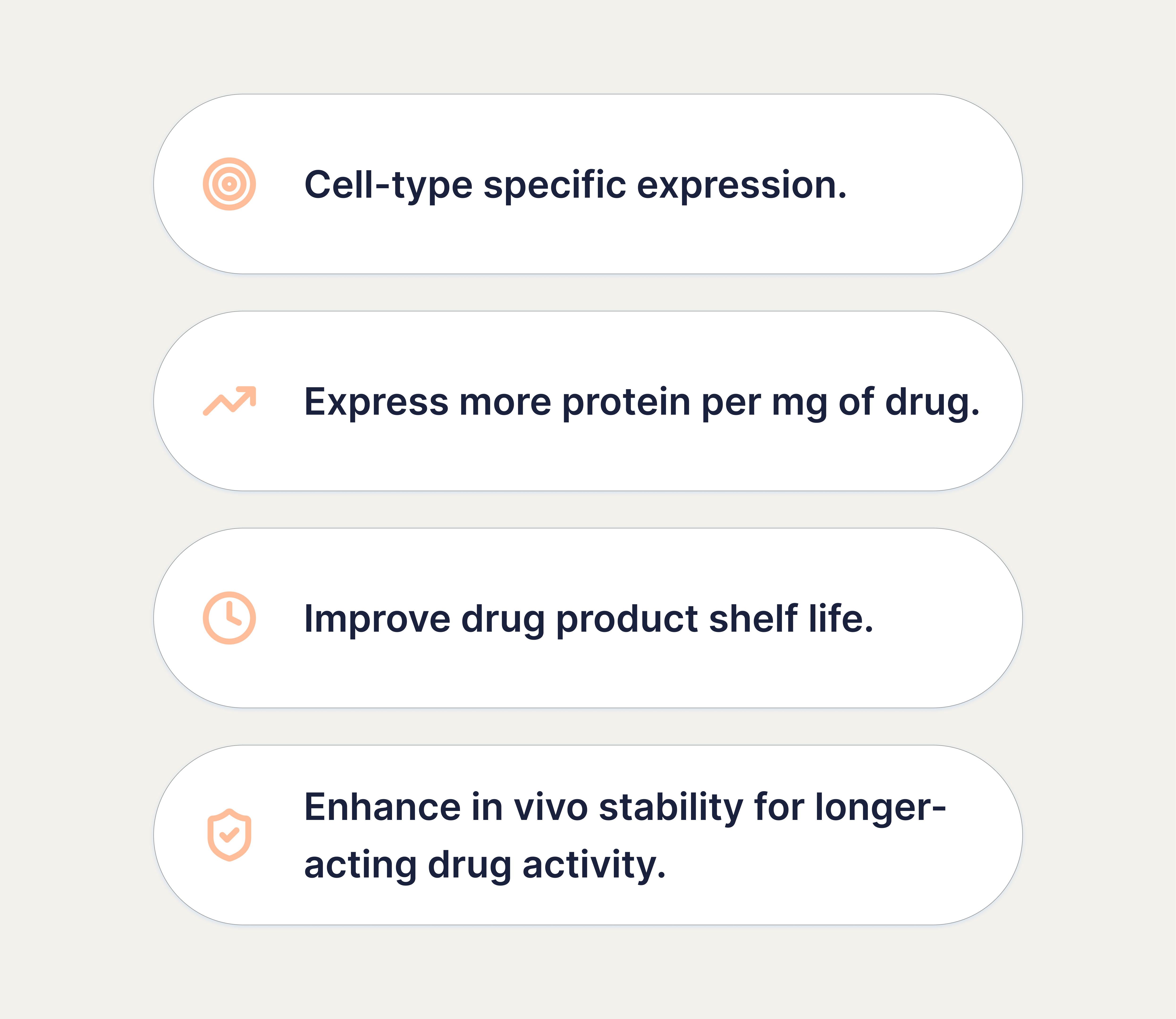 - Express more protein per mg of drug.